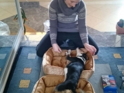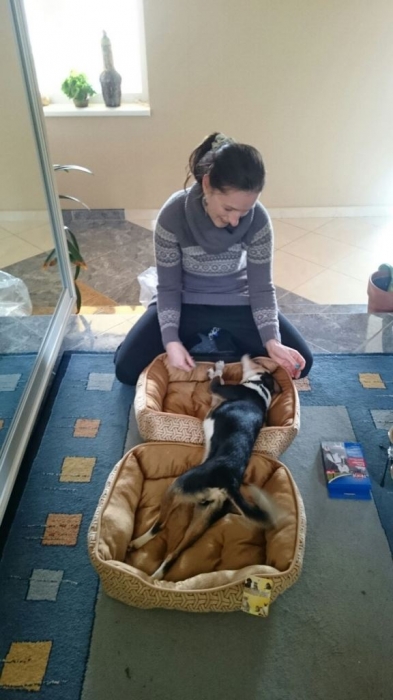 Namuose labai buvo susirūpinusi, šeimininkės iš akių nė minutei nepaleido, į jos vyrą dar atsargiai reagavo, bet vis gerėja ir gerėja santykiai. Pasilikti namuose vienai didelės problemos nėra, o koks džiaugsmas kai sulaukė, atrodo, kad ir stogą nukels. Apėjome teritorijas, pamiškę ir ežero pakrantę, apžiūrėjome visur, susipažinome. Pasitepėme vaistukais nuo erkių. Su katinu draugystės nėra, bet jo ir nekankina, neliečia, negąsdina, nesibrauna į jo erdvę. Šiąnakt visi viename kambaryje miegojome, Uogytė savo gulte, Pukis ant lovos krašto, visi taikai. Ačiū už nuostabę Uogytę, už pasitikėjimą. Šiandien ryte vyko medžioklė, vos zuikio nesumedžiojom.