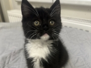 Gražuolis pilkutis staiga atsirado viename kaimo kieme kur kačių niekada nebuvo, vienas be mamos. Jį greičiausiai atvežė ir paliko. Vinciukas draugiškas ir žaismingas murkliukas juoda nosyte, baltais batukais :).